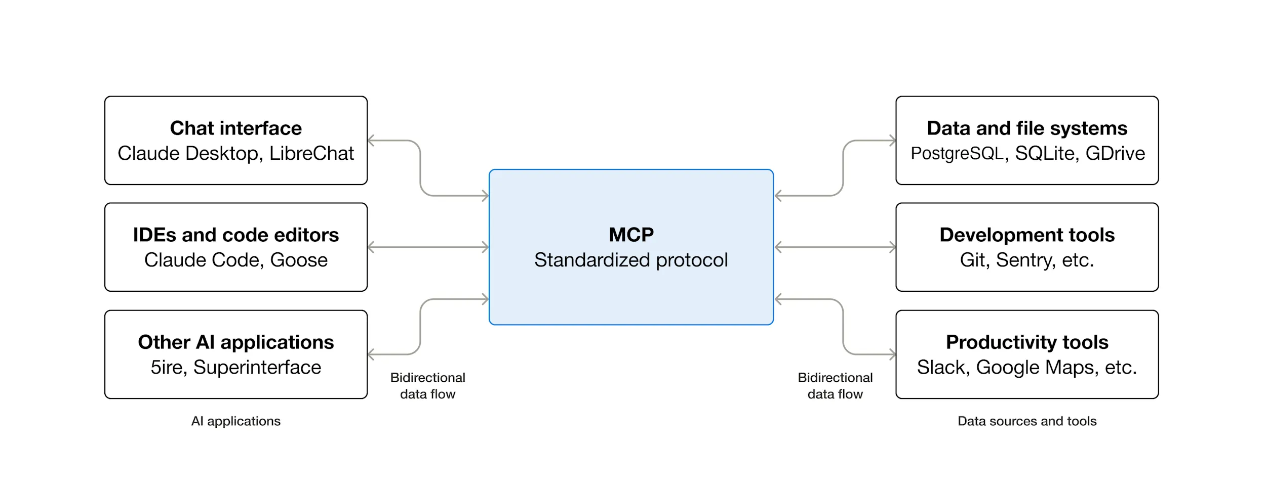 - AI applications or agents: MCP provides access to an ecosystem of data sources, tools and apps which will enhance capabilities and improve the end-user experience.