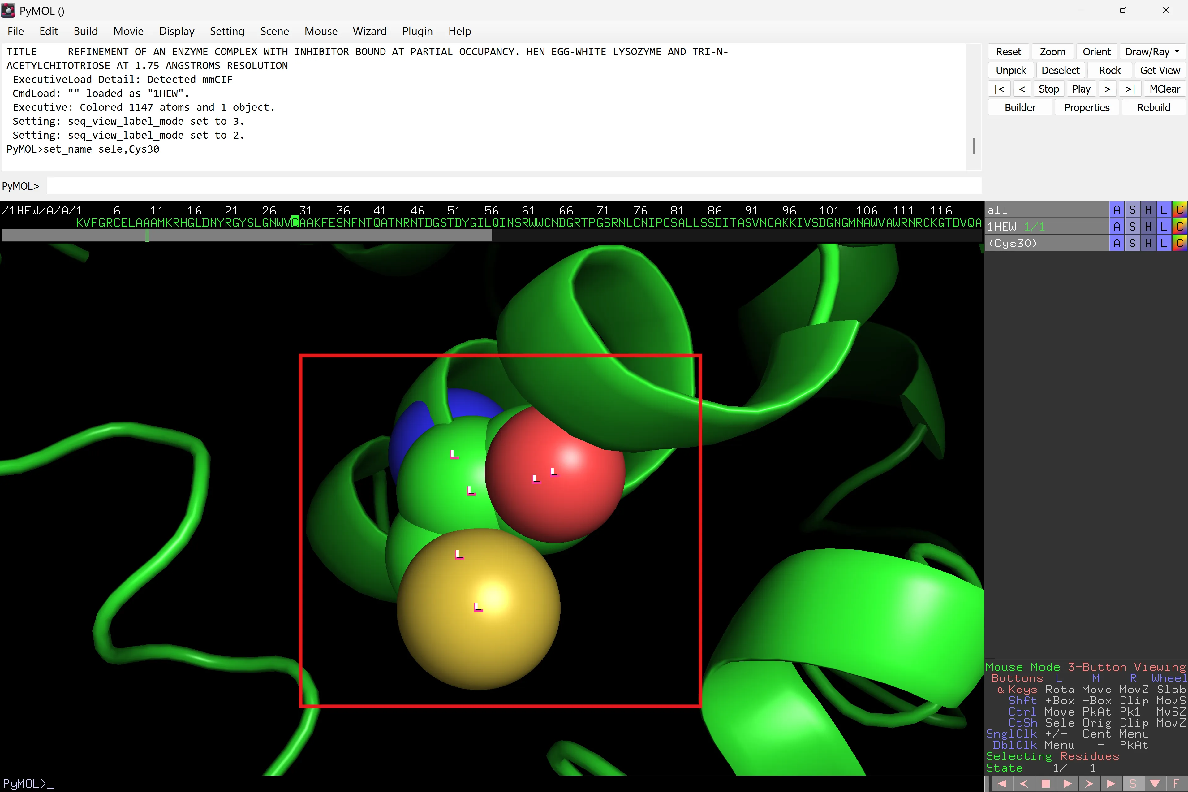 La selecció sota 1HEW ara és (Cys30).