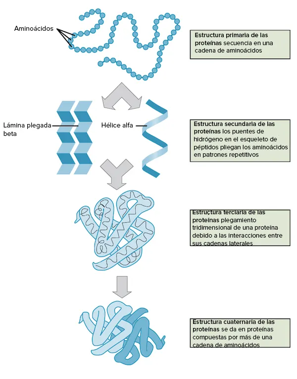 A continuació tens un diagrama de flux que representa els quatre ordres de l’estructura de la proteïna: