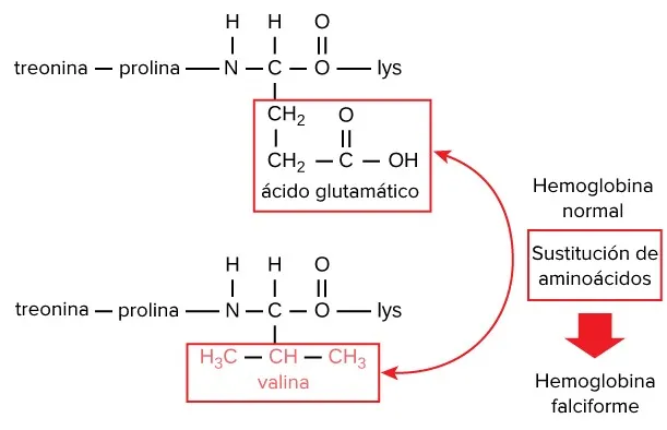 Tal com es mostra a continuació, l’àcid glutamàtic és reemplaçat per una valina: