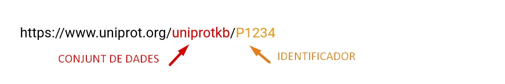 L’adreça web d’una entrada consta d’un nom de conjunt de dades (per exemple, uniprot, uniref, uniparc, taxonomy,…) i l’identificador únic de l’entrada, per exemple: