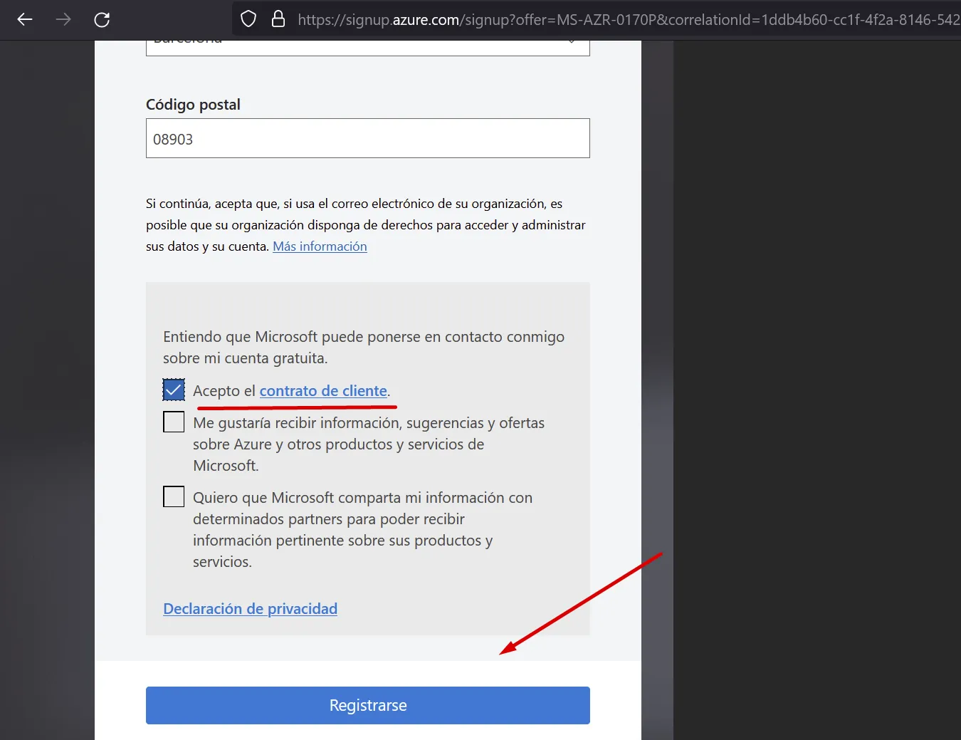 Accepta el contracte de client i registrat: