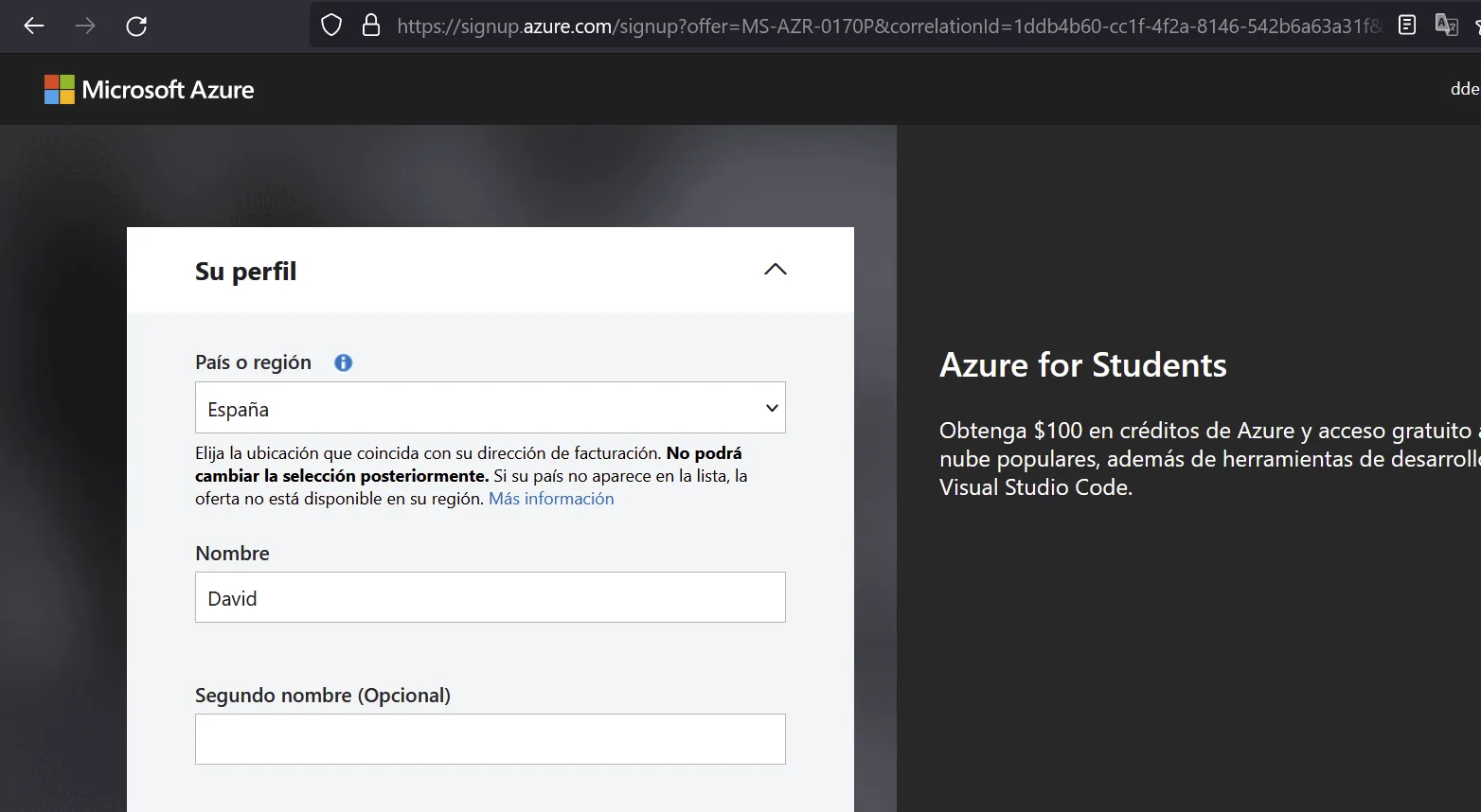 Ja has completat el registre com estudiant i disposes de 100$: