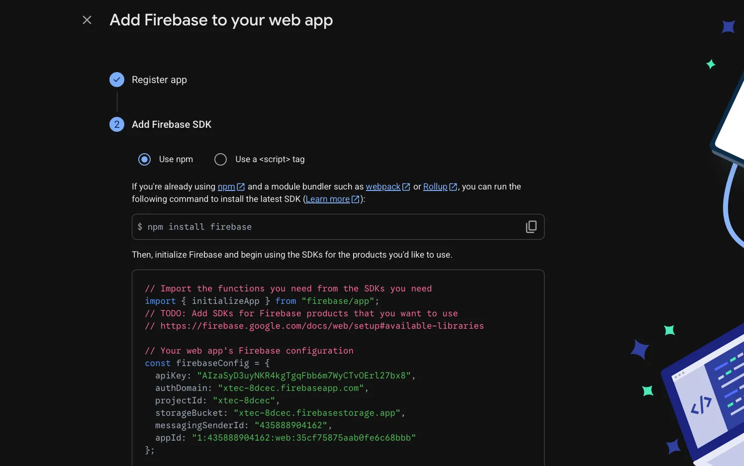 Replace FIREBASE_CONFIGURATION with your web appβs firebaseConfig.