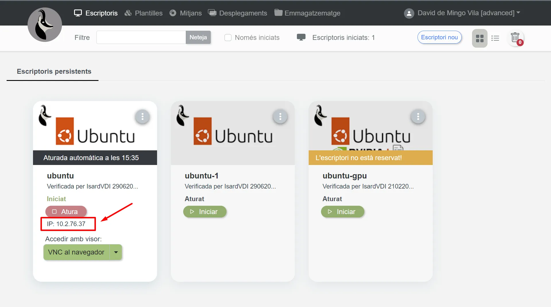 Crea una màquina Ubuntu 22.04 Desktop_Isardvdi_v1.1 amb el nom
