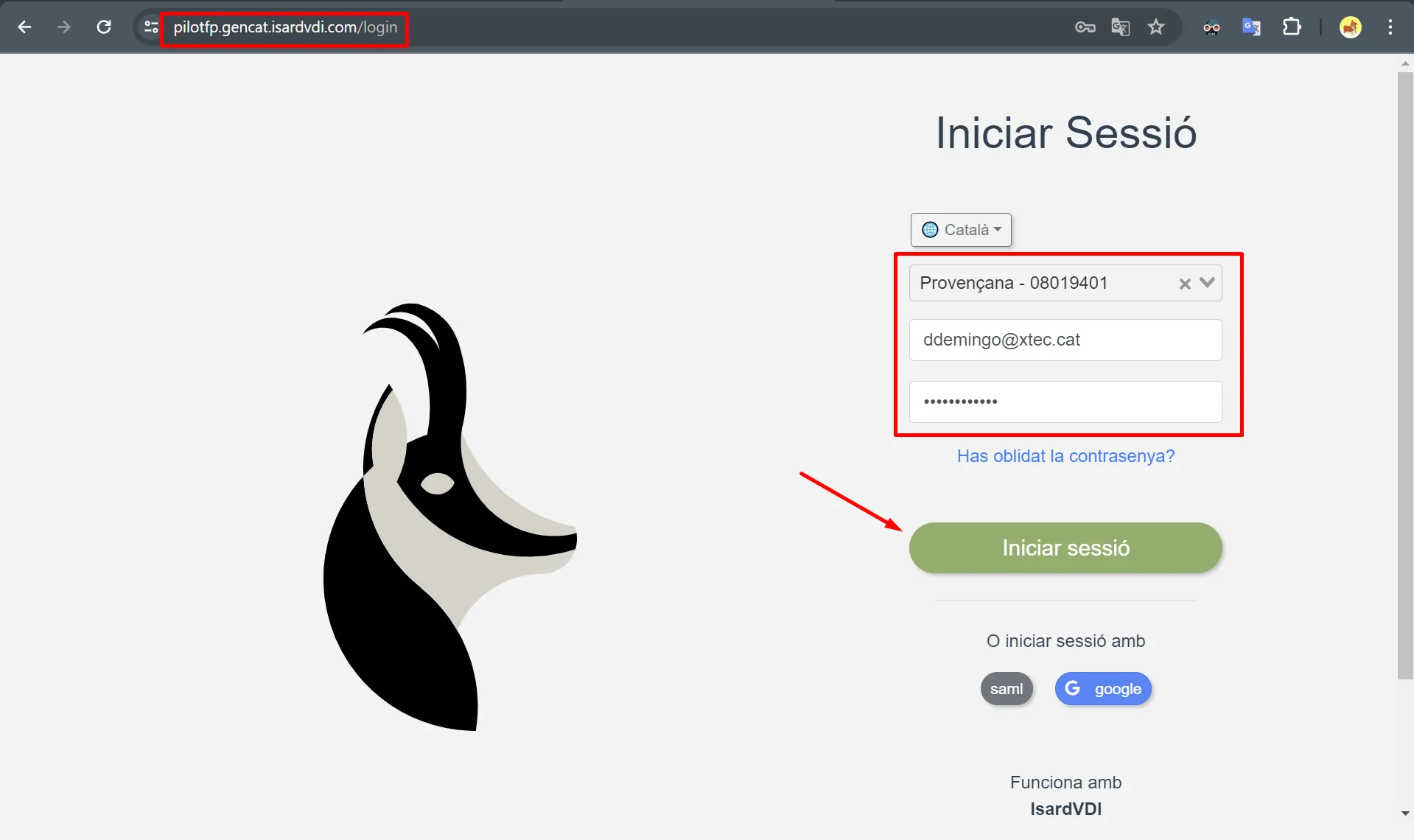 > new-isard estherInciar Sessió:Nom d'usuari []:...Has d’introduir el teu usuari i contrasenya d’Isard.