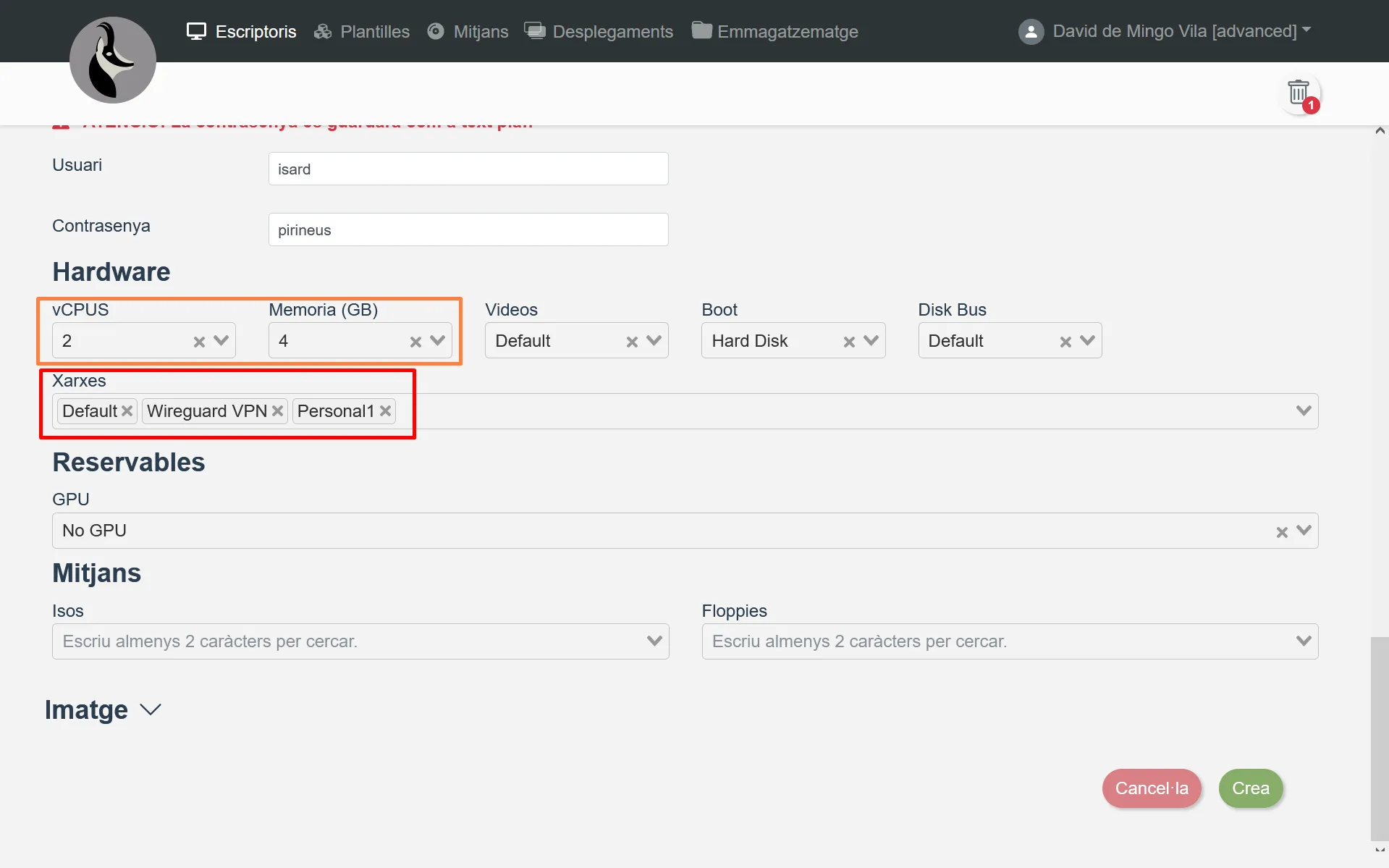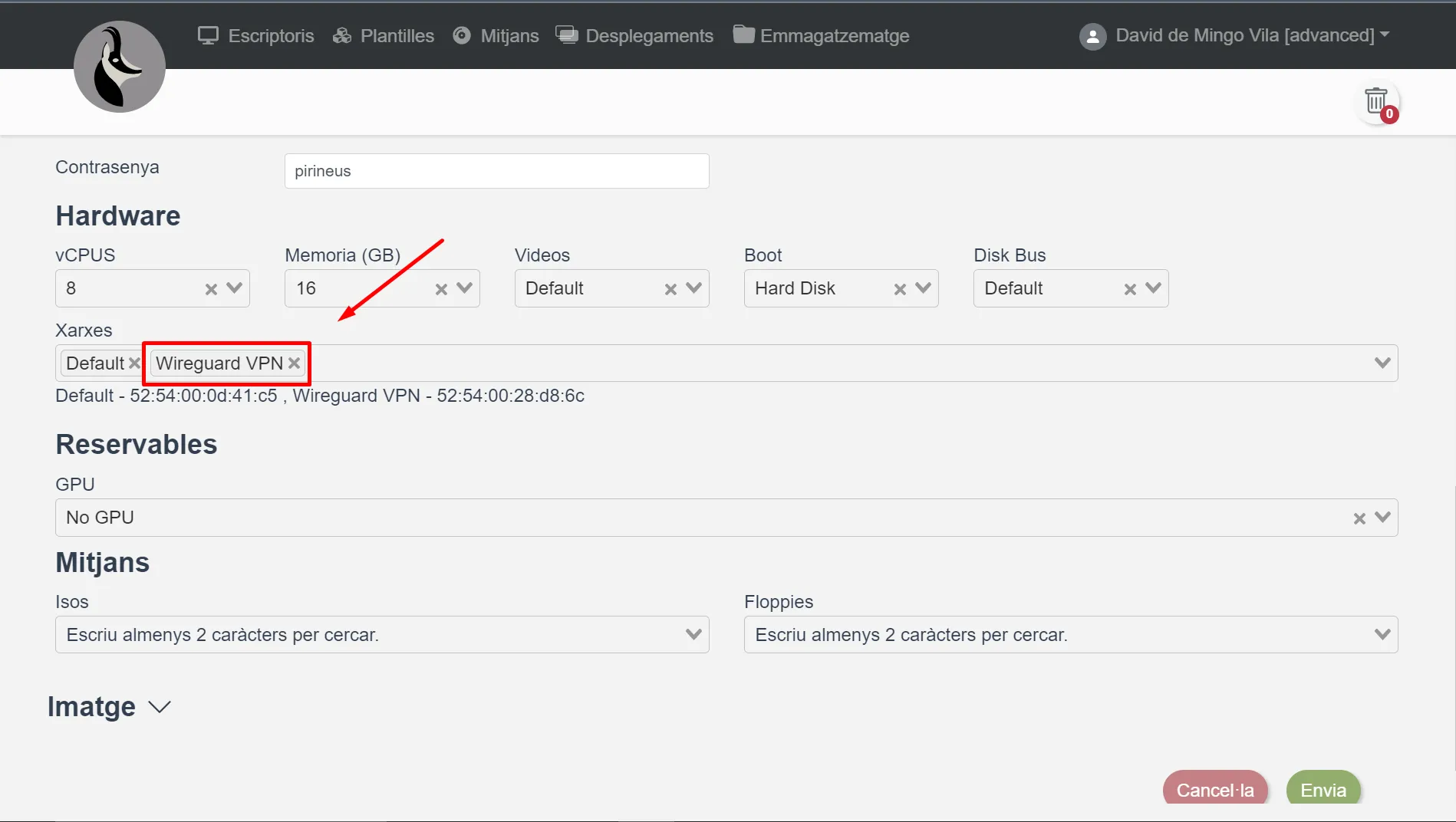 Nota Les imatges server, com l’Ubuntu 22.04 Server_Isardvdi_v1.3, no funcionen amb una interfície Wireguard VPN.