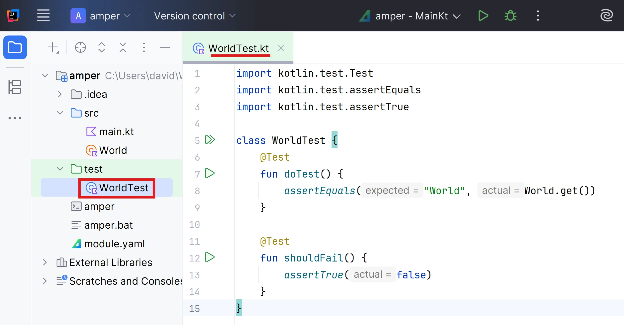 |-src/ # production code| ...|-test/ # test code| |-MainTest.kt| |-...|-module.yamlAmper configura el framework de proves Kotlin test de manera automàtica per a cada plataforma
