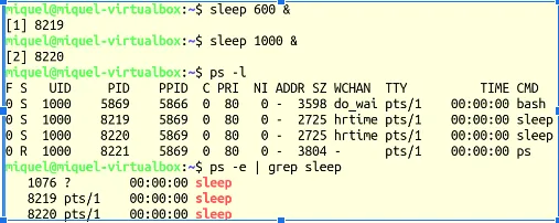 e. Executa el procés Sleep 600 i Sleep 1000 en segon pla
