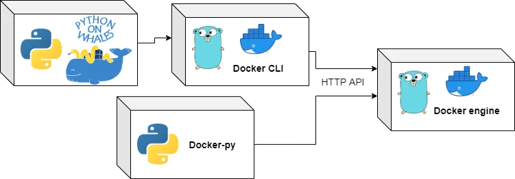Docker SDK for Python és una llibreria que permet interactuar directament amb l’API HTTP de Docker Engine, i el seu objectiu no és replicar el client Docker (escrit en Golang), sinó parlar amb l’API HTTP de Docker Engine. El client Docker és extremadament complex i és difícil de duplicar en un altre idioma. Per això, moltes de les funcions que es trobaven al client Docker no poden estar disponibles a docker-py. És una llibreria molt utilitzada; per exemple docker-compose està escrit en Python i aprofita docker-py.