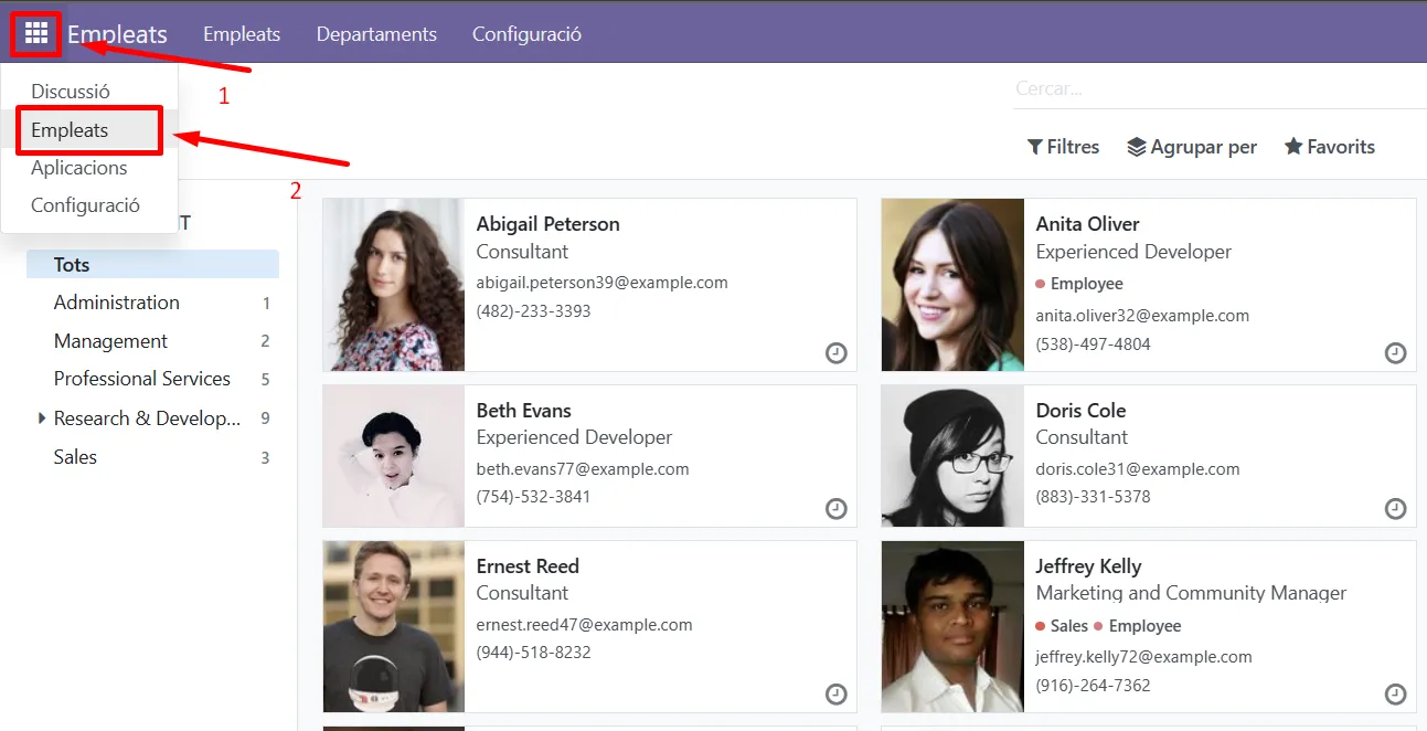 Activa la gestió d’empleats per poder accedir a les dades d’empleats: